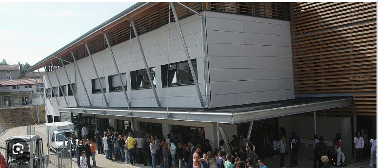 Réhabilitation du collège existant par surélévation du bâtiment par une charpente 4 pans sur fermes mixtes bois et métal.