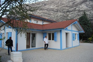Maison full bois à ossature poteaux poutre visible lamelle collé et contre collé douglas.